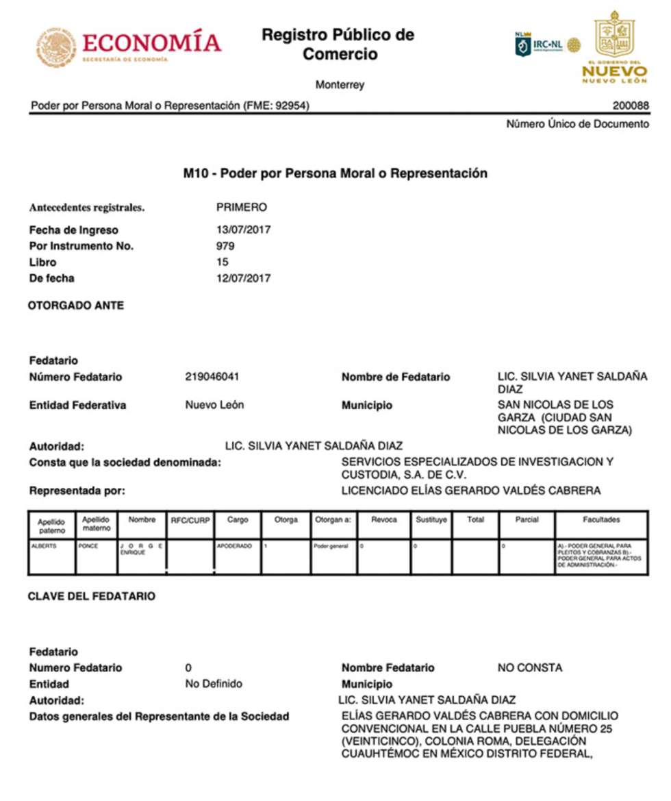 El domicilio de Séneca 350 también es compartido con Servicios Profesionales de Seguridad Privada (SERPROSEP), otra compañía de seguridad cuyo director general es Christian Pablo Varela Escobedo.