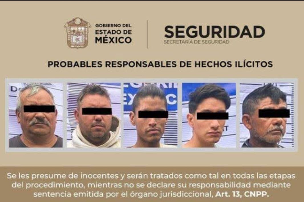 Texcoco, Estado de México. Elementos de la Secretaría de Seguridad del Estado de México (SSEM) y de la Policía Municipal detuvieron a cinco hombres por su probable responsabilidad en el delito de despojo, luego de ser señalados por ingresar sin autorización a un inmueble en la colonia Guadalupe.